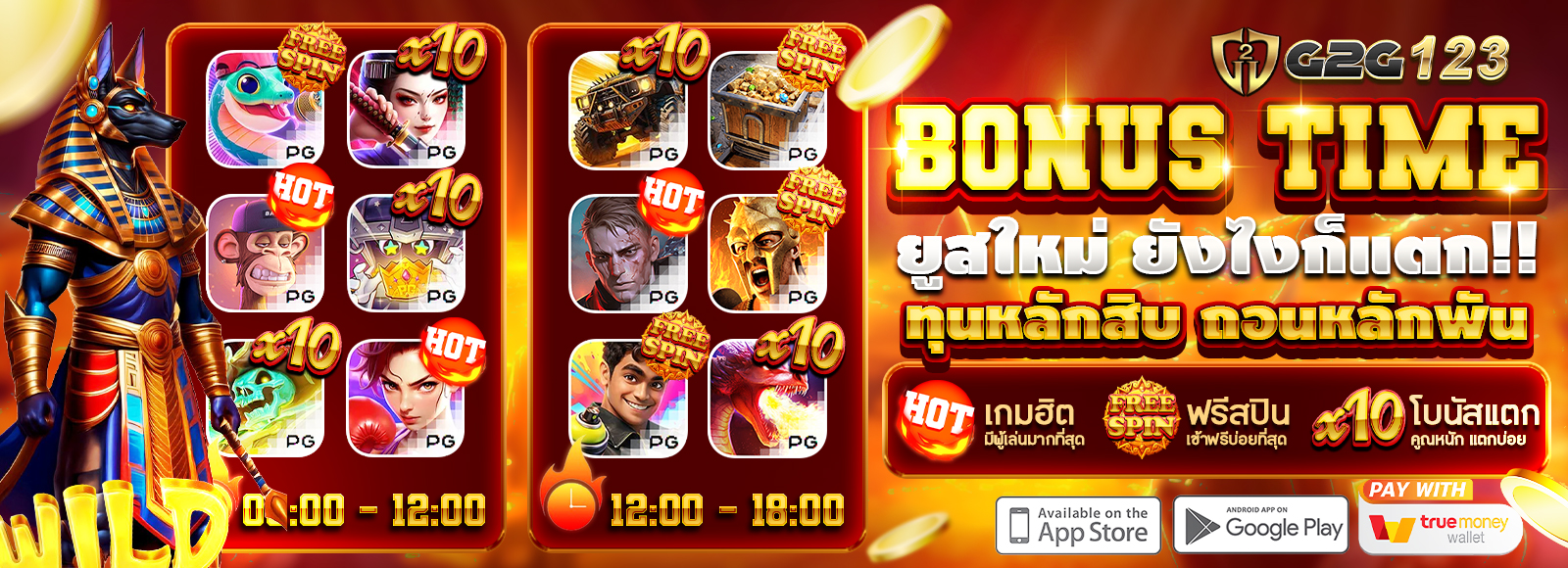 G2G123 สล็อตเว็บตรง แตกง่าย การันตีโดยผู้ใช้งานจริงกว่า 500,000 ยูสเซอร์ต่อเดือน โดยเฉลี่ยผู้เล่นจะสามารถเข้าฟีเจอร์โบนัส (Bonus Feature) ได้ภายใน 15-30 สปินแรก และยังมีเกมดังที่ขึ้นชื่อว่า “แตกหนัก” เช่น: